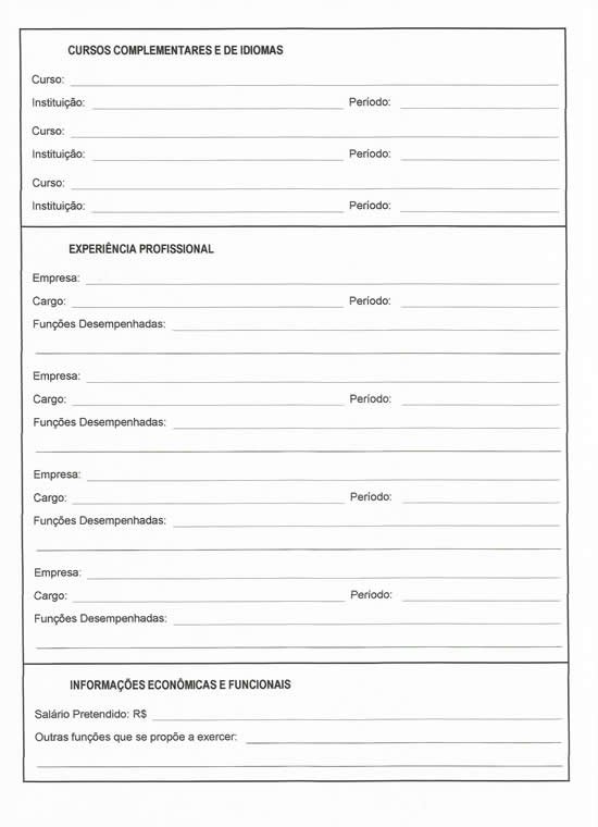 Currículo. Modelo de Currículo pronto para preencher e imprimir: Modelo de Currículo simples, igual aos Formulários de Currículo vendidos em papelarias.